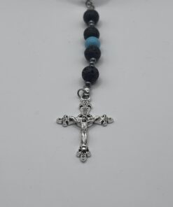 Bracciale con Pietre di Lava da 4mm, Ossidiana e Crocetta in Ematite