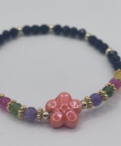 Bracciale con Ciondolo Fiore in Ceramica e Pietre Sfaccettate 4mm