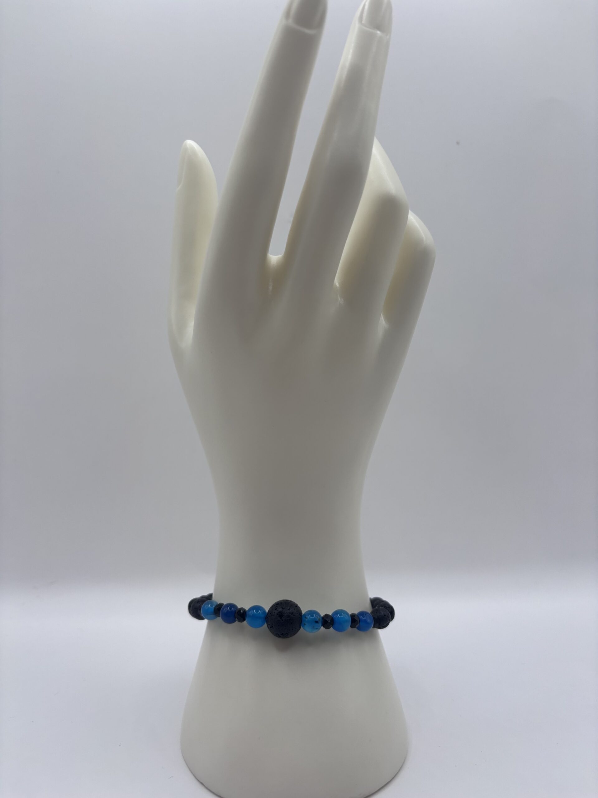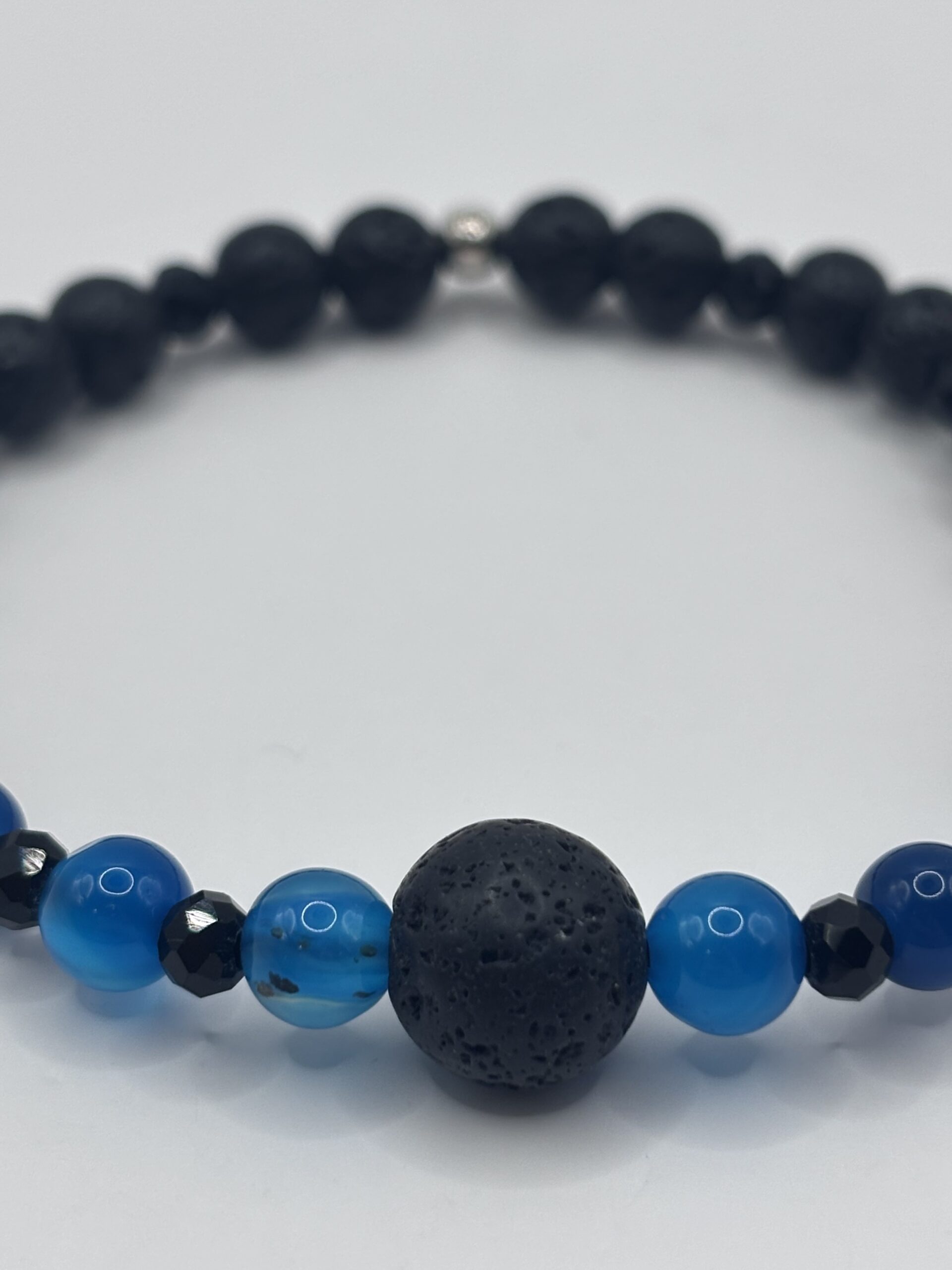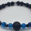 Bracciale con Pietre da 6mm in Lava e Ossidiana con Agata Blu e Perla Centrale da 10mm