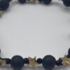 Bracciale con Pietre da 6mm in Lava e Ossidiana con Stelle in Ematite Dorata