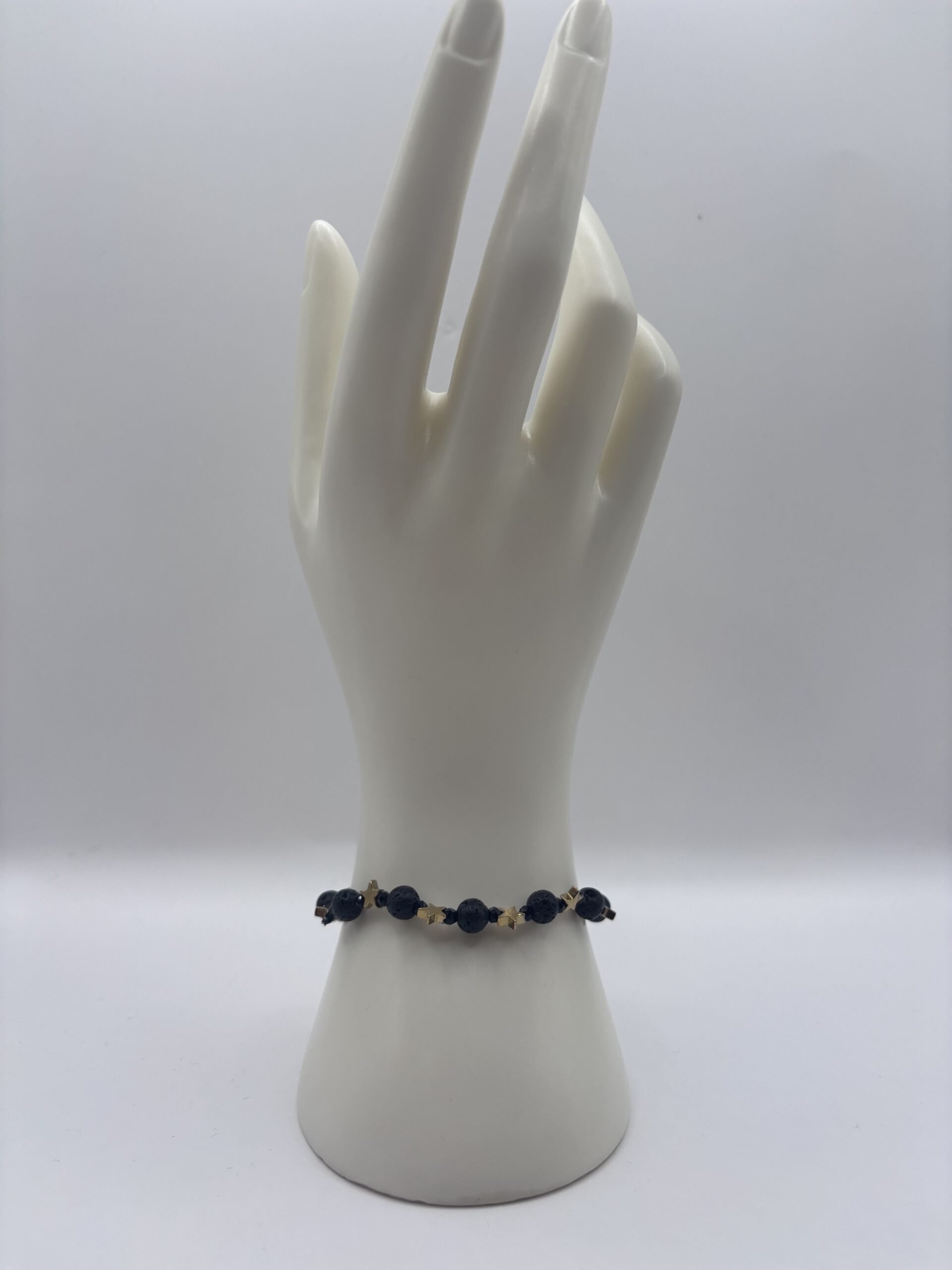 Recensisci per primo “Bracciale con Pietre da 6mm in Lava e Ossidiana con Stelle in Ematite Dorata” Annulla risposta