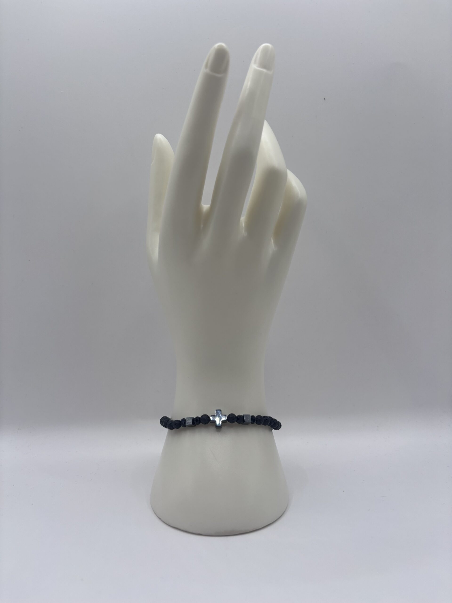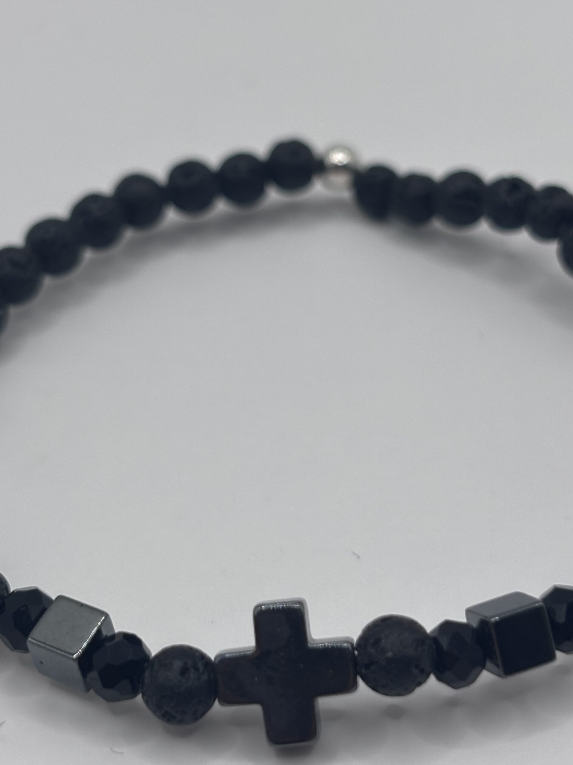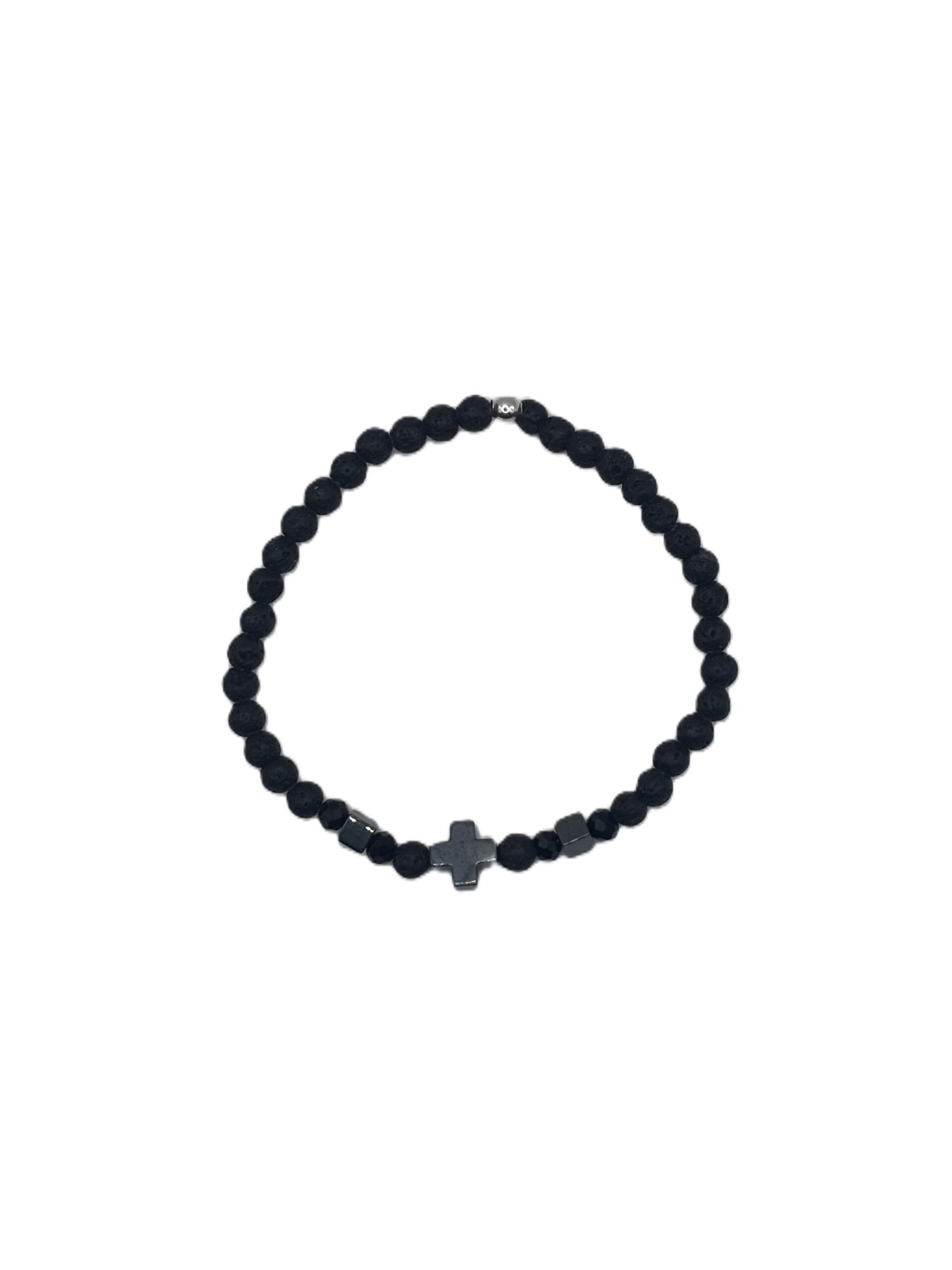 Bracciale con Pietre di Lava da 4mm, Ossidiana e Crocetta in Ematite