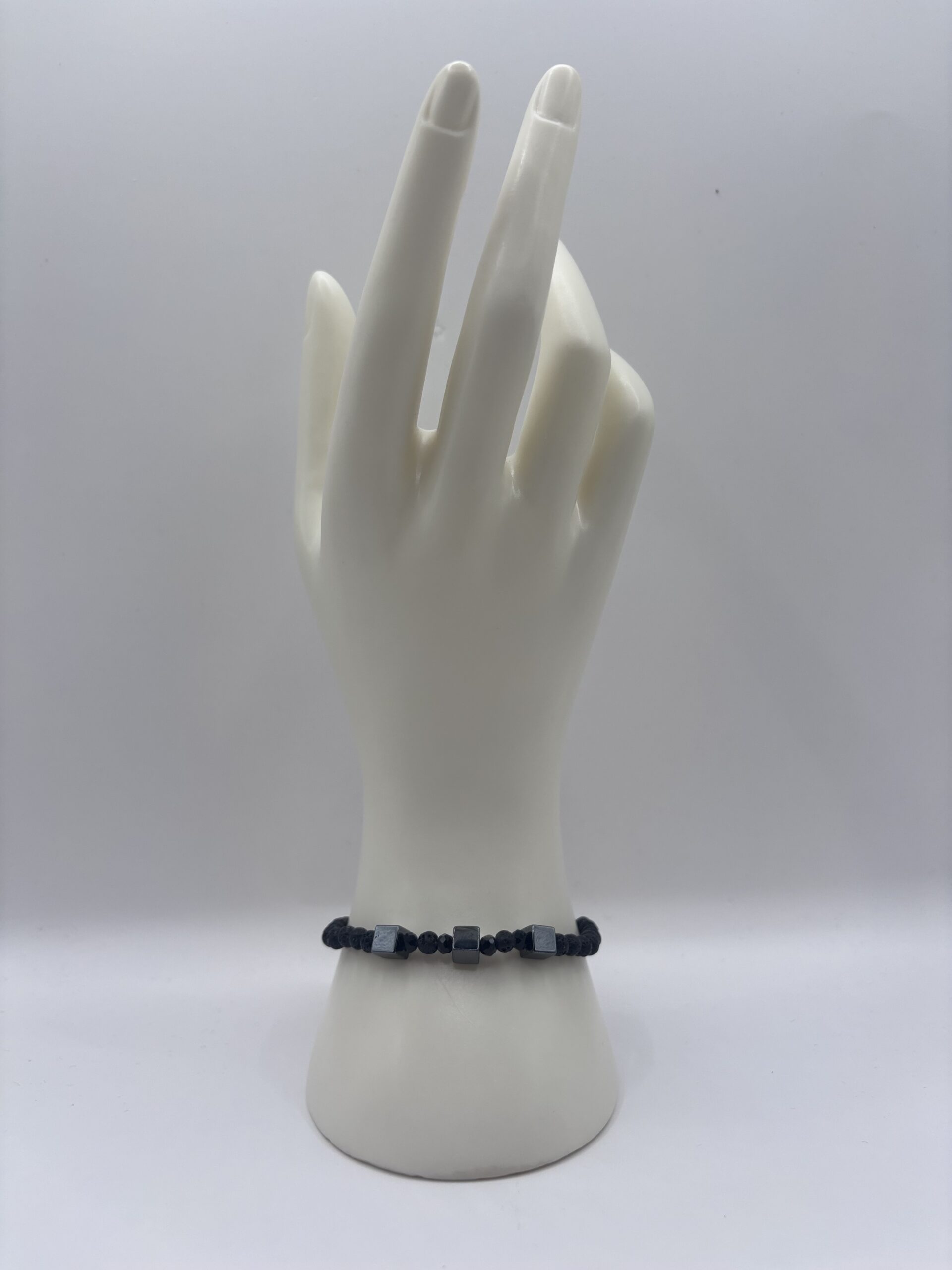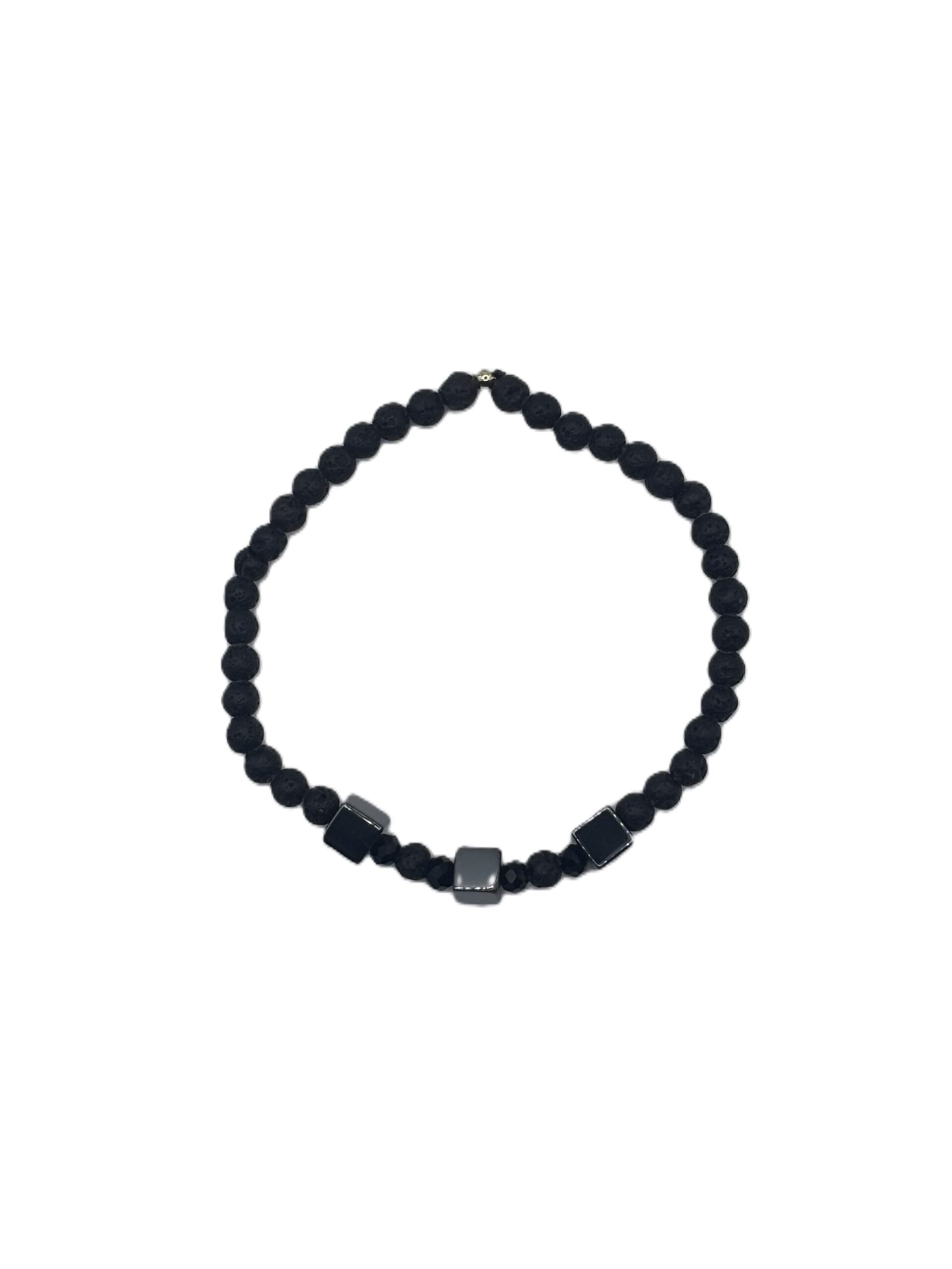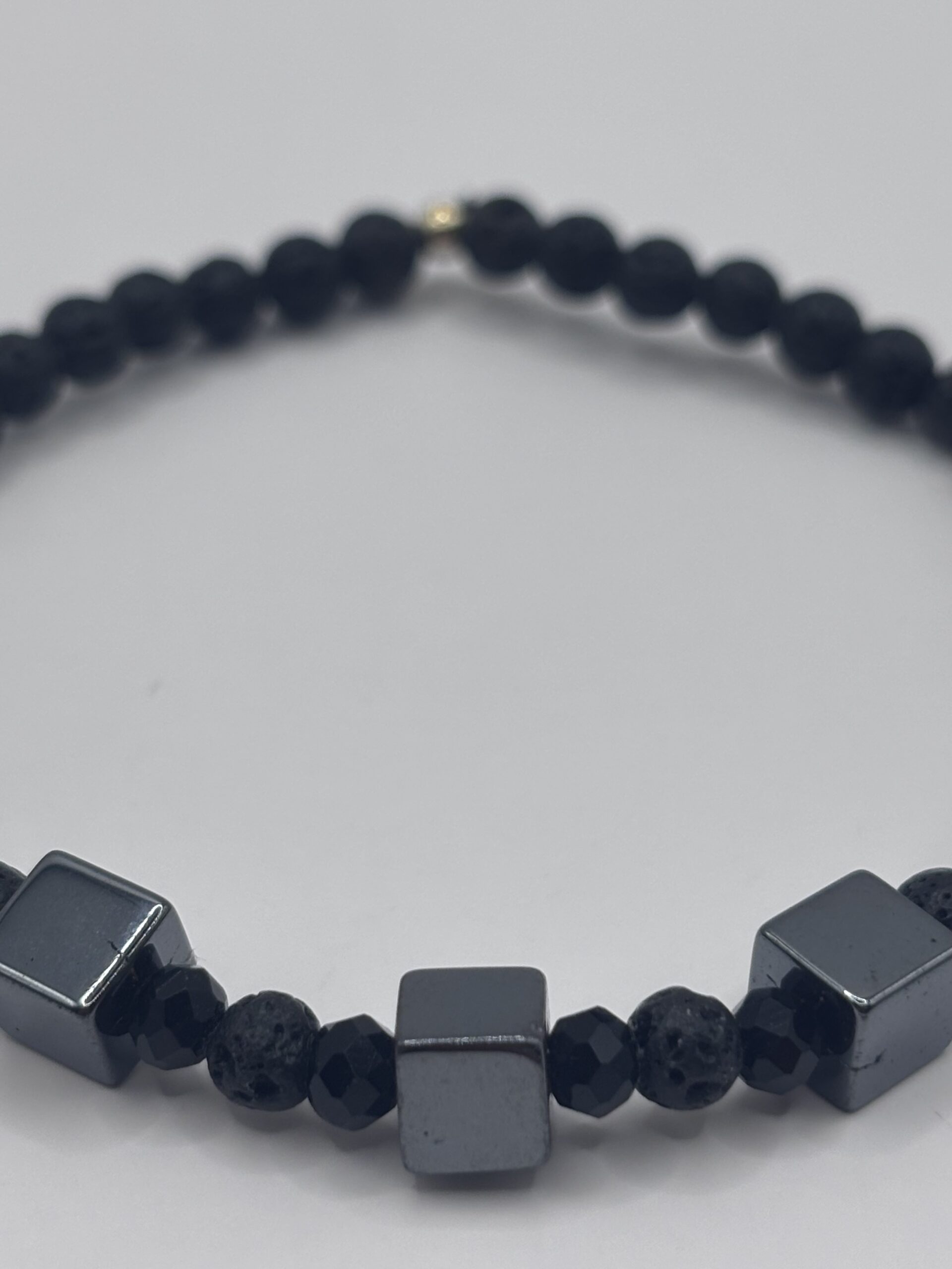 Bracciale con Pietre di Lava da 4mm, Ossidiana e Cubi in Ematite