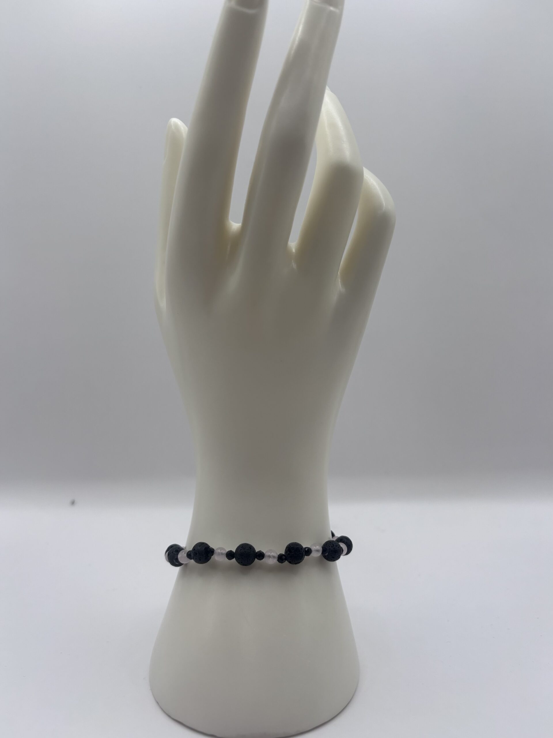 Bracciale in Pietra Lavica, Ossidiana e Quarzo Rosa