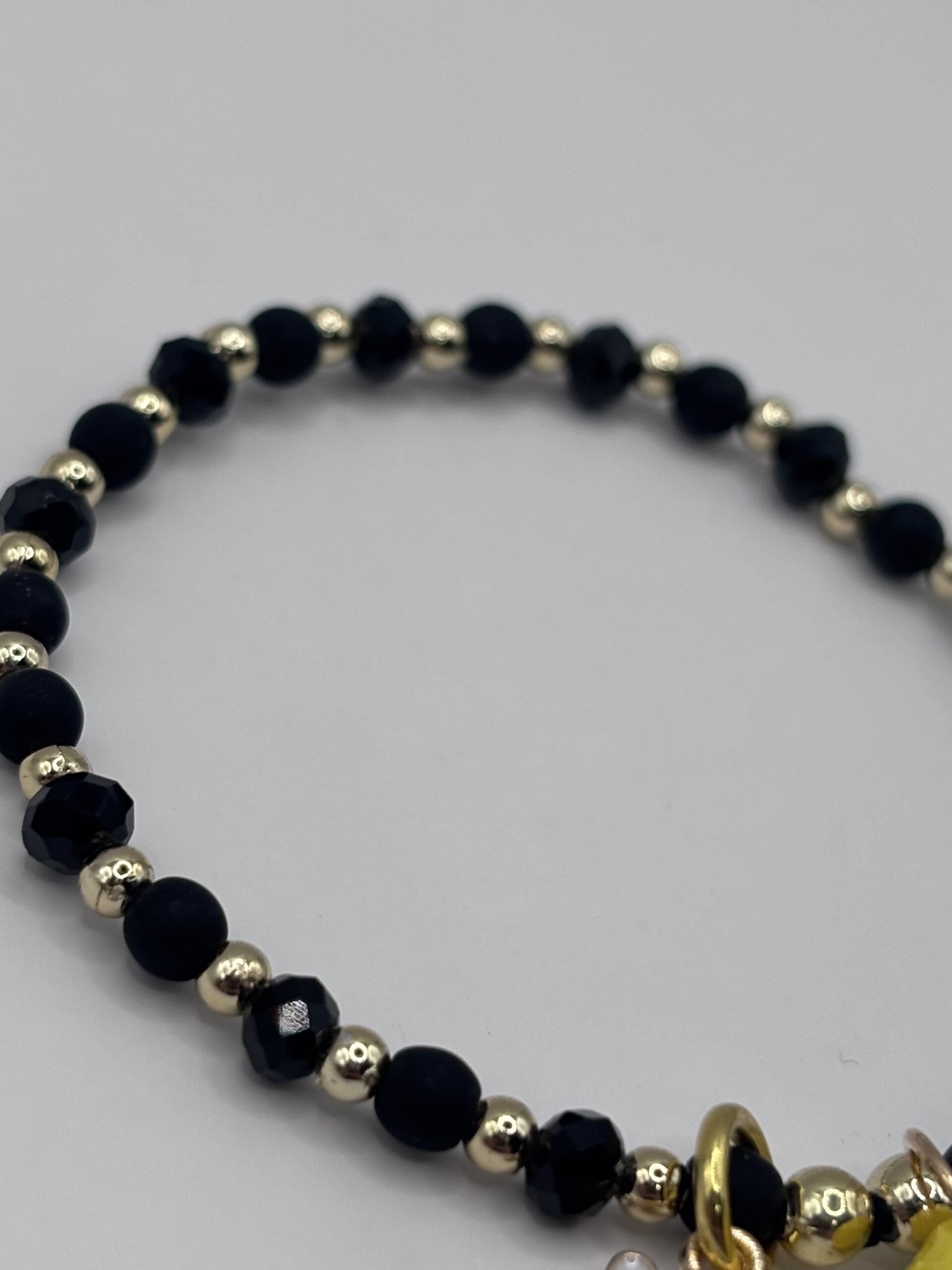 Bracciale in Ossidiana e Polvere di Lava con Ciondolo Coccinella e Perla