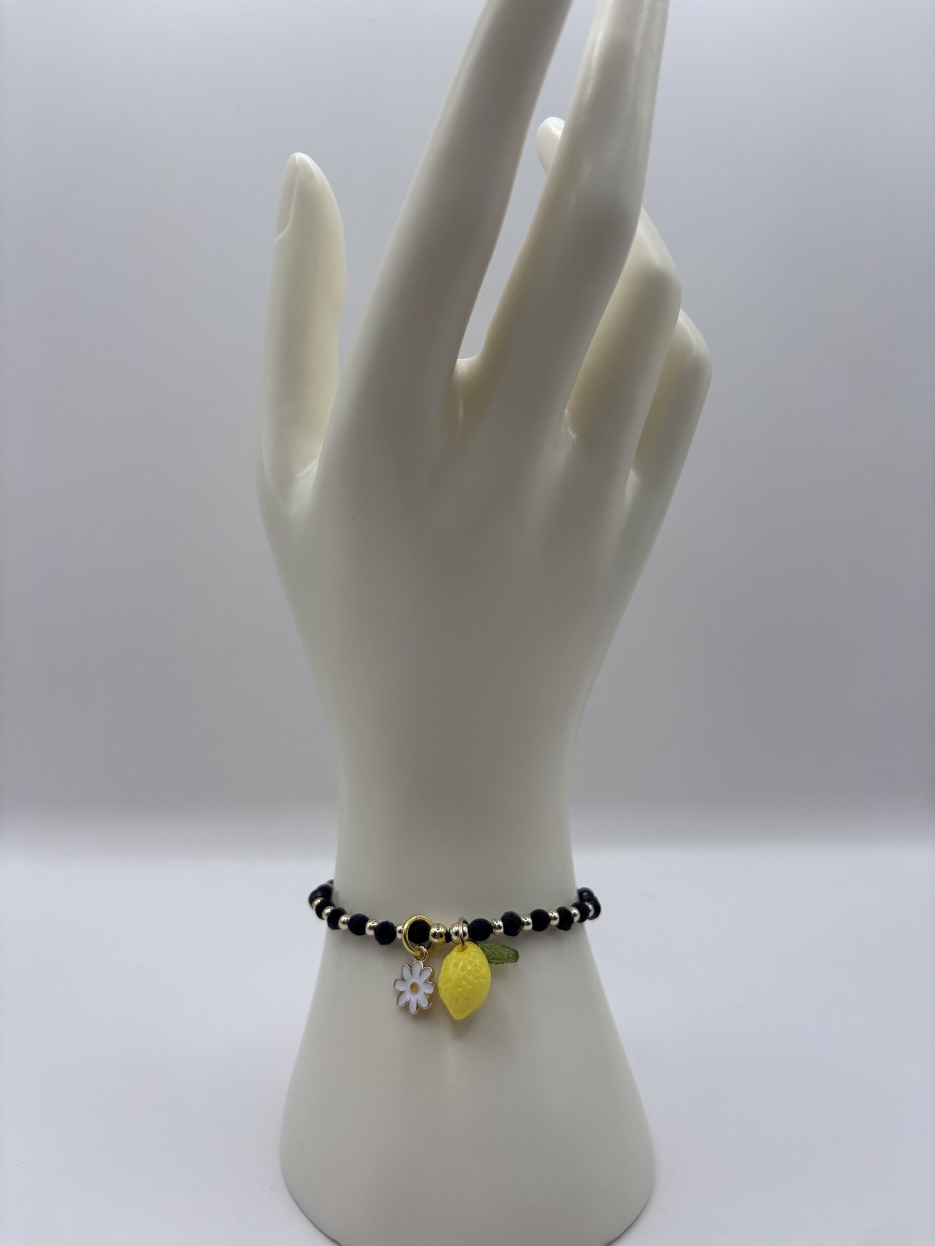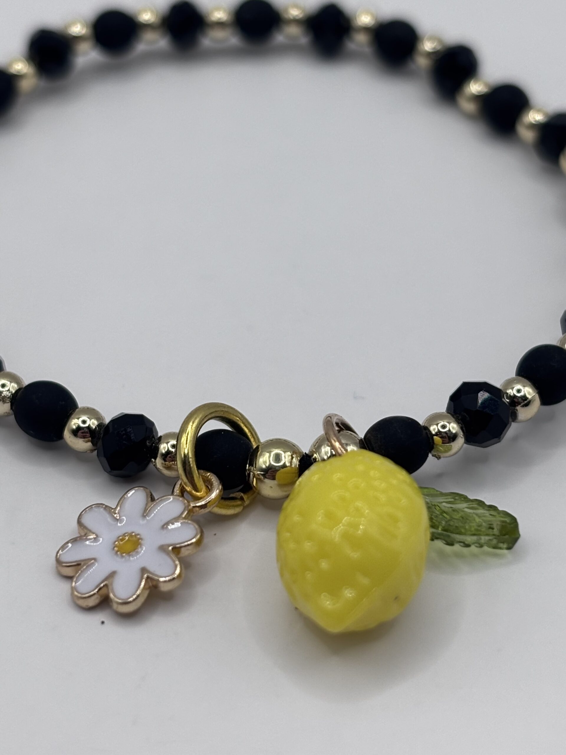 Bracciale in Polvere di Lava e Ossidiana con Ciondolo Limone